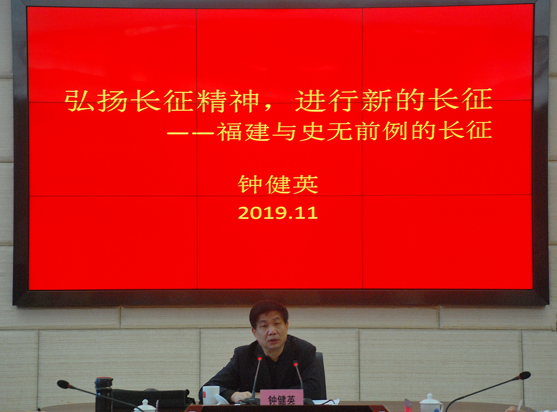 11月6日,校党委召开党委理论学习中心组(扩大)学习会,邀请省委党史方志办副巡视员钟健英作“弘扬长征精神,进行新的长征——福建与史无前例的长征”专题报告。校党委书记刘剑津主持会议并讲话。在家校领导、学校副处级及以上领导干部参加会议。